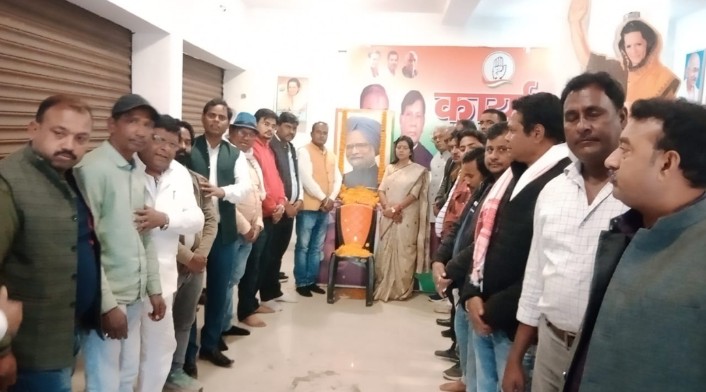 रामगढ़ जिला कांग्रेस कमेटी के अध्यक्ष मुन्ना पासवान के नेतृत्व में जिला कार्यालय ब्लॉक चौक रामगढ़ में पूर्व प्रधानमंत्री डॉ मनमोहन सिंह के आकस्मिक निधन पर शोक सभा एवं श्रद्धांजलि सभा का आयोजन किया गया । इस मौके पर विधायक ममता देवी ने अपना गहरा शोक व्यक्त करते हुए कहा कि डॉ मनमोहन सिंह भारत के 13 वे प्रधानमंत्री थे सन 2009 में लोकसभा चुनाव में मिली जीत के बाद वह जवाहरलाल नेहरू के बाद भारत के पहले ऐसे प्रधानमंत्री बने जिनको पांच वर्षों का कार्यकाल सफलतापूर्वक करने के बाद लगातार दूसरी बार प्रधानमंत्री बने के अवसर प्राप्त हुआ साथ ही जिला अध्यक्ष मुन्ना पासवान ने कहा कि पूर्व प्रधानमंत्री डॉ मनमोहन सिंह भारत के अर्थव्यवस्था में बहुत बड़ा योगदान रहा । भारत देश सदैव स्मरण करेगा । डॉक्टर मनमोहन सिंह कुशल प्रशासक और विनम्र व्यक्ति थे उनके निधन से कांग्रेस पार्टी की बहुत बड़ी क्षति हुई है श्रद्धांजलि सभा कार्यक्रम में मुख्य रूप से विधायक ममता देवी, शहजादा अनवर ,बलजीत सिंह बेदी, खगेंद्र साव,के डी मिश्रा, धर्मराज राम ,दिनेश मुंडा ,संजय साव, नगर अध्यक्ष बलराम साव,शहजाद खान, अनिल नायक ,शमसूद खान, संतोष नायक, गगन करमाली, अब्बास खान अजमल अंसारी सहित सैकड़ों कांग्रेस कार्यकर्तागण उपस्थित थे ।