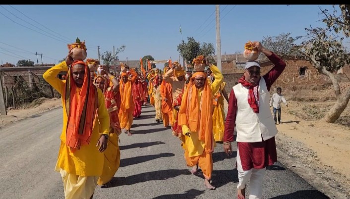 बालूमाथ:-शुक्रवार को मुरपा पंचायत के रामनगर हरैयाटांड़ में शिव मंदिर यज्ञ अनुष्ठान हेतु कलश यात्रा के साथ सात दिवसीय यज्ञ अनुष्ठान शुरू हो गया. कलश यात्रा हरयाटांड़ यज्ञस्थल से गाजे बाजे के साथ भव्य तरीके शुरू हुआ. जिसमे हजारों की संख्या में महिला पुरुष बच्चों ने भाग लिया. कलश यात्रा हरयाटांड़ से होते हुए मुरपा शिव मंदिर में पूजा अर्चना करने के बाद जल यात्रा के लिए हहारों नदी से जल भरकर यज्ञ स्थल पर कलश स्थापित किया गया. वही यजमान में रामलखन प्रजापति, उद्धव प्रजापति, लक्ष्मण प्रजापति चमन प्रजापति, मुनेशवर साव, बालदेव साव, संजय साव, प्रमोद साव, पंकज साव, सुखु पाहन, अशोक साव, सुरेश यादव, गुडडु सिंह, प्रफुल्ल पांडेय, वैजनाथ साव सपत्नीक बैठे हैं. यजमानों को विधिवत मंत्रोच्चार महाराज राघव प्रपन्नाचार्य के द्वारा शुरुवात की गई. नदियाँ मे महाविदवान पंडितो के द्वारा पूजा-पाठ कर कलश पर पानी भर कर लाया गया. यज्ञ में अयोध्या से आए हुए कलाकारों द्वारा प्रतिदिन रामलीला ओर राशलीला का आयोजन किया जाएगा एवं बच्चों के लिए मेला का भी आयोजन किया गया है. प्रतिदिन भंडारा का आयोजन किया गया है. आयोजन से पूरे क्षेत्र के ग्रामीणों में खुशी का माहौल देखा जा रहा है. मौके पर जिला परिषद सदस्या प्रियंका देवी, योगेन्द्र यादव, प्रकाश यादव ,बद्री यादव ,चेतलाल यादव ,संतोष यादव ,संतु यादव ,नानहु पासवान, लाखपति यादव ,बालेश्वर साव , पंकज गुप्ता , दिनेश प्रजापति ,रामदेव साव, नंदकिशोर राम ,बीरबल पासवान, सुरेश साव , उमेश साव, , नरेश पाहन ,योगेश साव, बासुदेव गुप्ता ,अक्षय यादव युगल किशोर सिंह ,कालेश्वर साव, प्रेम नारायण सिंह ,अर्जुन साव, निरंजन यादव, श्याम लाल यादव ,राजेंद्र यादव, गजेंद्र यादव ,संतु भगत, विजेंद्र यादव ,विश्वनाथ यादव, चंद्रदेव यादव, मुखलाल साव सहित ग्रामीण श्रद्धालु उपस्थित थे.