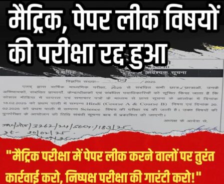 रांची:ऑल इंडिया स्टूडेंट्स एसोसिएशन (आइसा) झारखंड राज्य परिषद ने राज्य में मैट्रिक परीक्षा के प्रश्नपत्र लीक होने की घटना की कड़ी निंदा की है और इसे शिक्षा व्यवस्था की गंभीर विफलता करार दिया है। आइसा झारखंड के राज्य सचिव त्रिलोकीनाथ ने इस मामले में उच्च स्तरीय न्यायिक जांच की मांग करते हुए मुख्यमंत्री हेमंत सोरेन […]